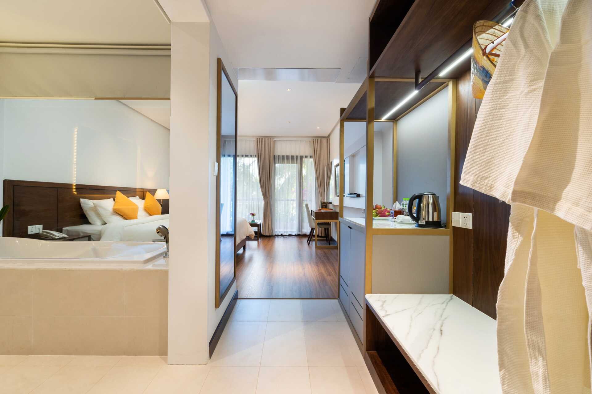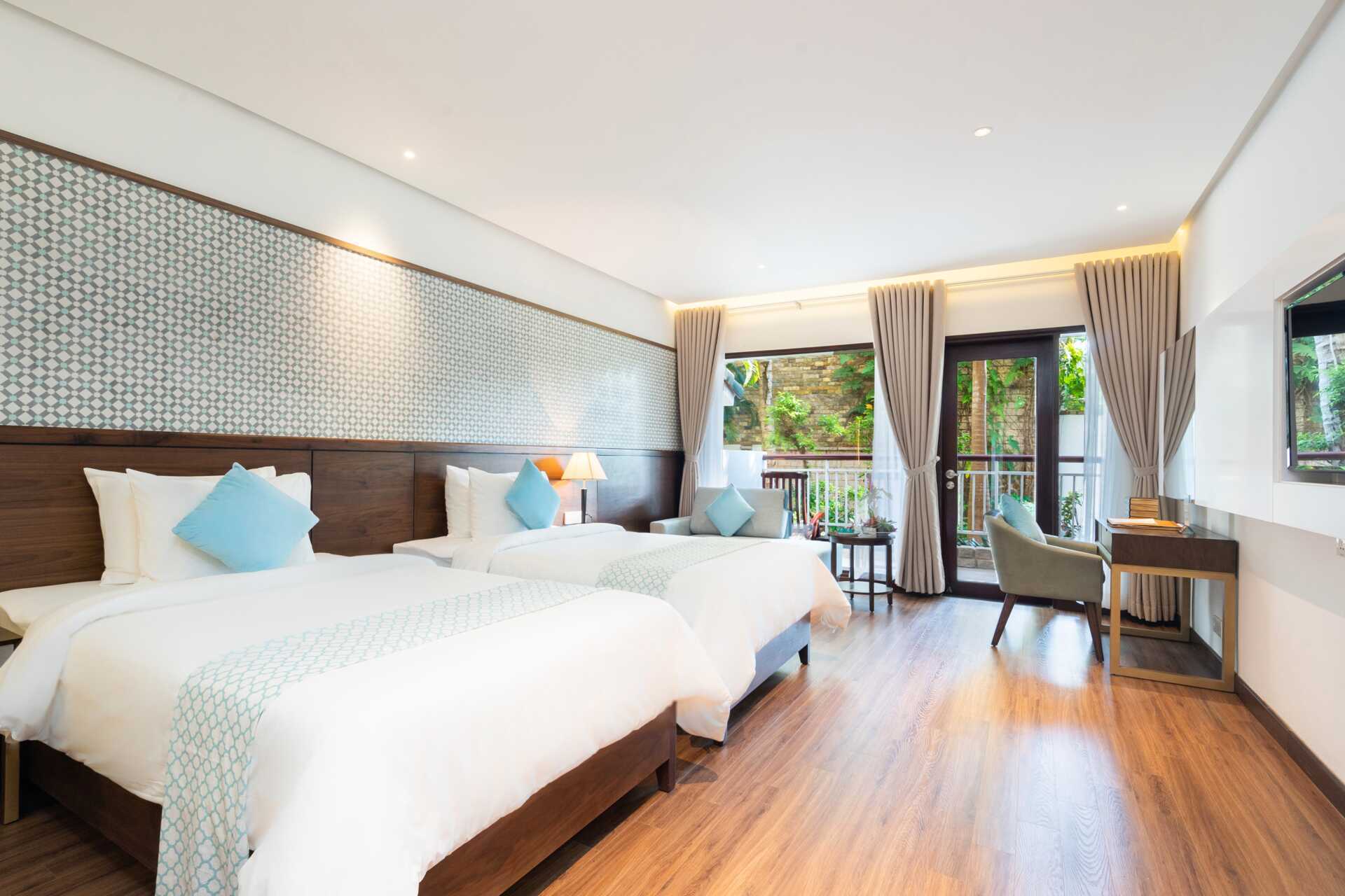 Superior-værelser med balkon eller terrasse, nogle med delvis havudsigt eller haveudsigt. En dobbeltseng og en enkeltseng. Mulighed for ekstra opredning i fold-ud seng eller i eksisterende senge. Gratis wifi, aircondition og deponering. Minibar - to små flasker vand er inkluderet og genopfyldes hver dag. El-kedel og kaffe/te. Tv med internationale kanaler. Hårtørrer. Badeværelse med badekar eller brus og toilet. Rengøring 7 gange om ugen.