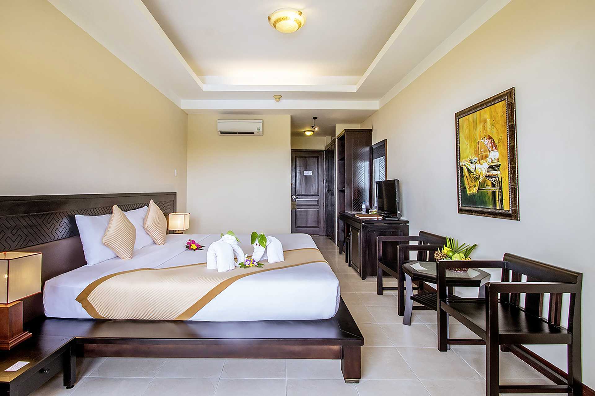 Deluxe-værelse med meget lille balkon og delvis havudsigt. Værelserne er placeret i hovedbygningen. En dobbeltseng eller to enkeltsenge. Mulighed for ekstra opredning i fold ud-seng. Gratis wifi, aircondition og deponering. Minibar - to små flasker vand pr. dag indgår. El-kedel og kaffe/te. Tv med internationale kanaler. Tøfler. Hårtørrer. Badeværelse med badekar eller bruser samt toilet. Rengøring 7 gange om ugen.