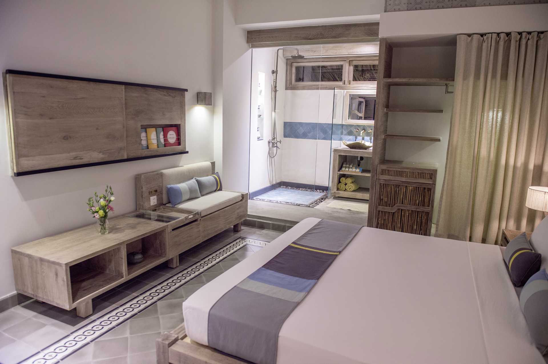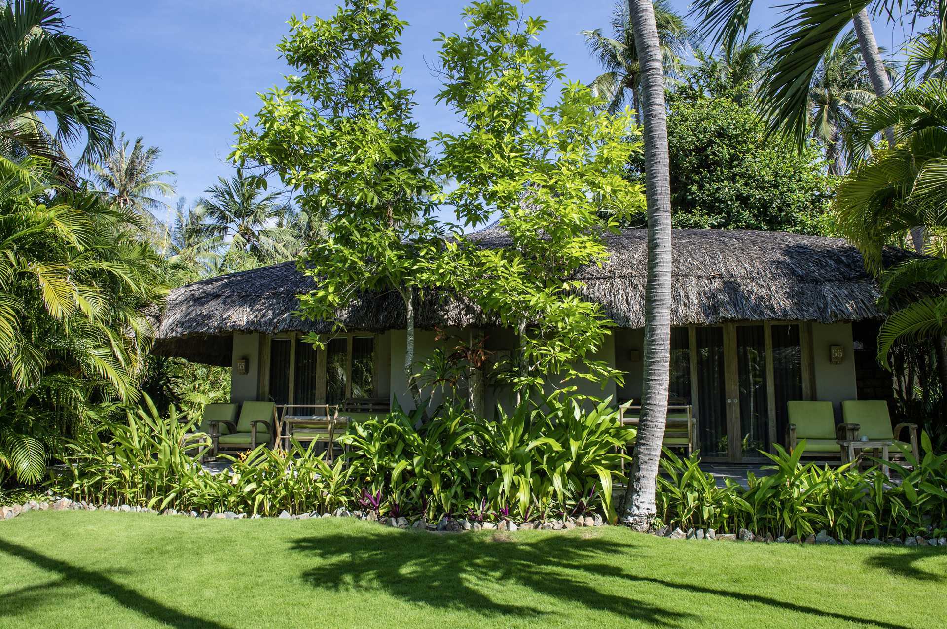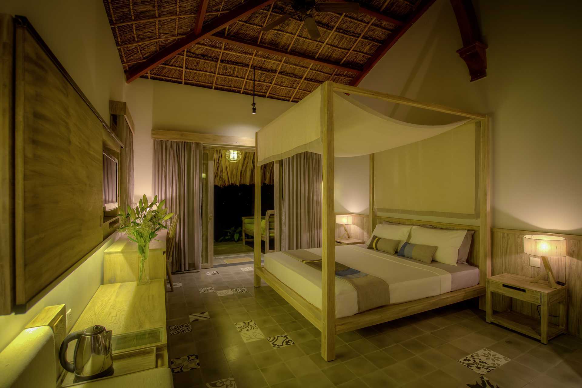 Deluxe-værelse i bungalows med terrasse. På terrassen er der en daybed, lænestole og et bord. En dobbeltseng eller to enkeltsenge. Mulighed for ekstra opredning i fold ud-seng. Gratis wifi, aircondition og deponering. Loftsvifte. Minibar - to små flasker vand indgår pr. dag. El-kedel og kaffe/te. Tv med internationale kanaler. Badekåber. Hårtørrer. Badeværelse med to brusere, badekar og toilet. Badeværelset er delvist udendørs. Rengøring 7 gange om ugen. Børn under to år tæller med i det maksimale antal personer på værelset.