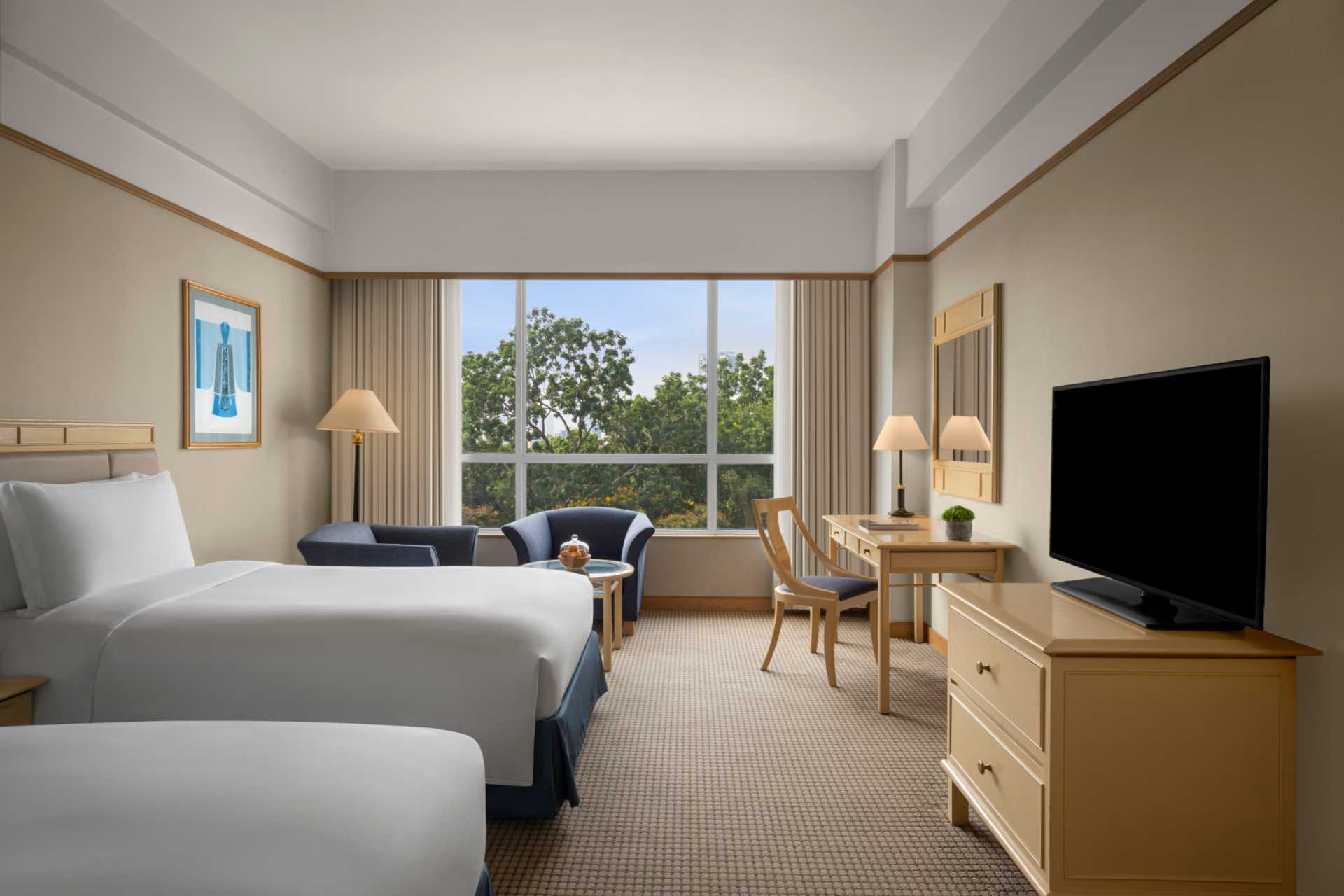 Deluxe-værelser beliggende på 2.-5. etage med dobbeltseng eller to enkeltsenge. Gratis wifi, aircondition og deponering. Tv med satellitkanaler. Minibar. El-kedel samt kaffe/te. Væg til væg-tæppe. Strygefaciliteter. Badekåber, tøfler og hårtørrer. Badeværelse med bruser og toilet. Ingen udeplads.